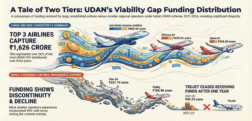 This is where the structural problem emerges. UDAN route auctions are designed around lowest VGF bids, not airline size or financial vulnerability. Large airlines can underbid smaller competitors because they can: